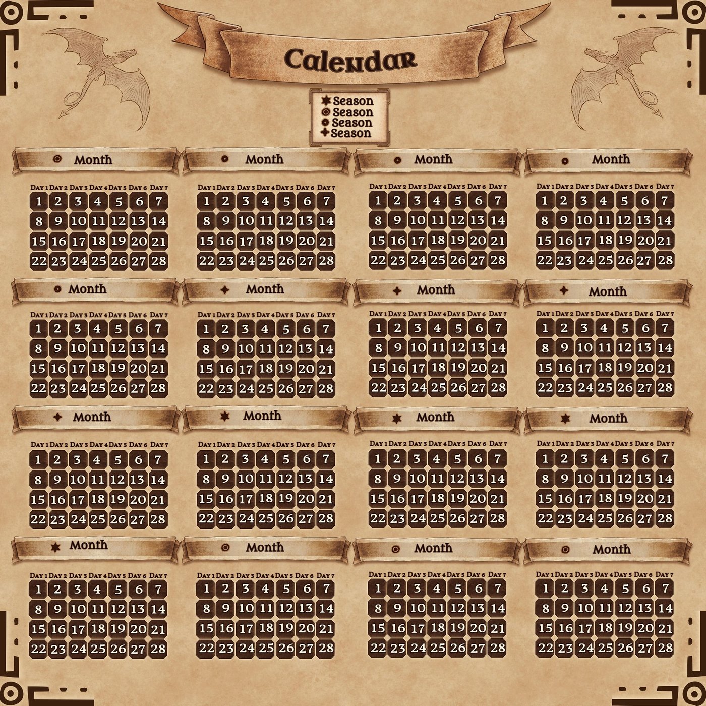 Even if you’re not sure. Web create a custom calendar with your own settings, icons, notes and lunar cycles. Web fantasy calendar is a tool that lets you build a calendar that fits your world, with flexible options for months, weeks, days, hours,. Today we’re discussing how to make a fantasy calendar of your very own.